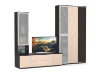 Стенка Аврелия 7 прекрасно впишется в любой современный интерьер. Снизу тумба под телевизор оборудована вместительными выдвижными ящиками. По бокам от нее – пеналы со стеклянными фасадами для небольших предметов декора или посуды помогут создать теплую домашнюю атмосферу. Обрамление стальными молдингами визуально увеличивает помещение и добавляет света. Сочетание контрастных оттенков фасада и корпуса добавляет шарма в интерьер гостиной. При необходимости, цветовую гамму изделия можно изменить. Успейте заказать свой эксклюзивный вариант стенки Аврелия 7 по низким ценам.