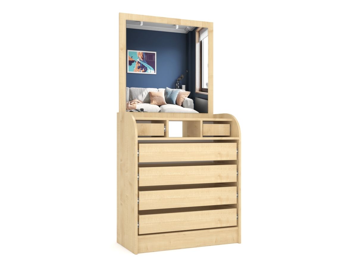 Комод-бюро с зеркалом - удобный вариант мебели, выполняющий одновременно функции органайзера, бюро и туалетного столика. Функциональная модель обладает множеством практичных деталей. На столешнице комода дизайнеры разместили два ящика с полочкой поверх них. Комод-бюро с зеркалом — отличное решение как для малогабаритных квартир, так и для просторных помещений.