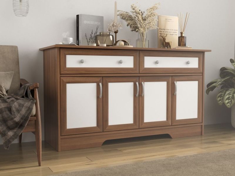 Комод Стенворд 21 - уютный и красивый комод. Рамка из МДФ подчеркнет индивидуальность и придаст вашей квартире некий шик. В нем есть 2 шкафа, спрятанные за четырьмя дверцами, а также два выдвижных ящика. Комод можно разместить в прихожей, коридоре, гостиной. Использовать его можно под любые вещи.