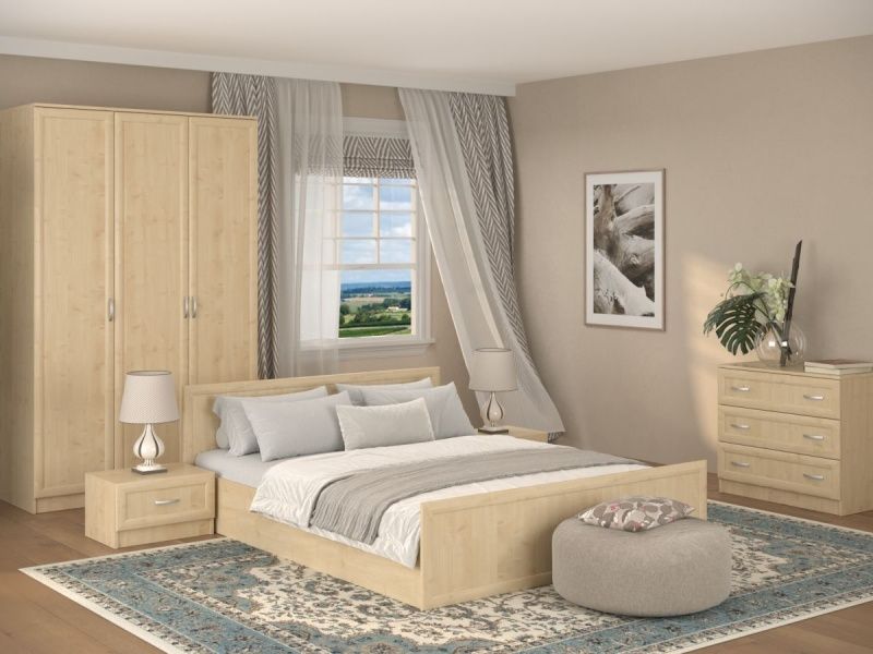 Стильный и элегантный Спальный гарнитур «Лира 1.1» это отличное решение, которое поможет по-современному оформить спальню. В набор входит вся нужная мебель для отдыха и удобного хранения одежды. Мебельные фасады сделаны в рамке МДФ, благодаря ним изделия выглядят особенно выразительно.