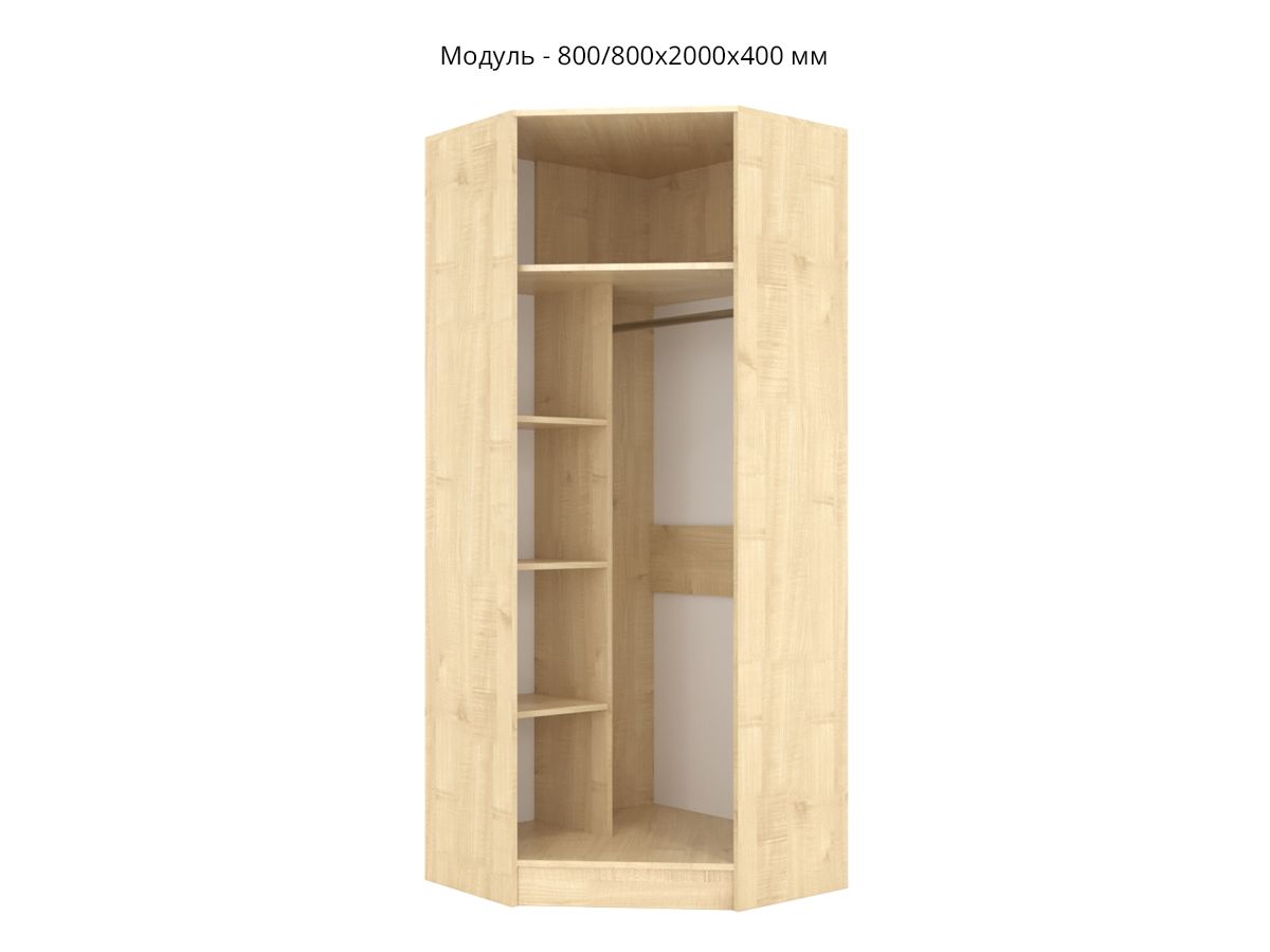 Шкаф угловой: 800/800х2000х400 мм;