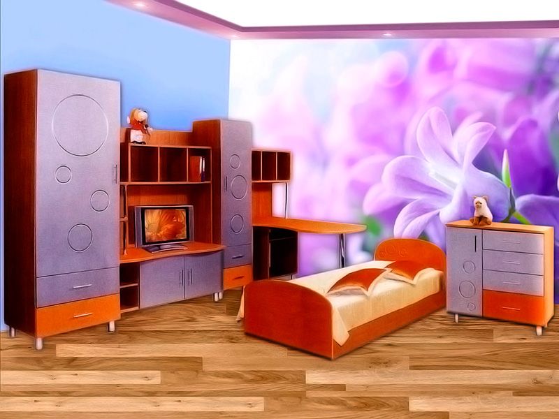 Детская стенка Аллани - гарнитур в детскую комнату, представленный тремя отдельно стоящими мебельными предметами. Стенка расположена на высоких ножках, поэтому под ней можно легко помыть полы и убрать пыль. В комплекте стенки: шкафы, ящики, телевизионная тумба, полки и выступающий письменный стол. В комплектацию входит кровать и комод.