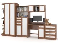 Детская стенка Том и Джерри 2 — оригинальная и практичная. Слева находится платяной шкаф с угловым стеллажом для игрушек и других вещей. Следом за ним идет модуль с выдвижными ящиками, открытыми полками и отделениями с дверцами. Над удобным компьютерным столом навесной шкаф с двумя закрытыми и открытыми полками. Завершает комплект комод с ящиками. Яркие цвета добавят красок в интерьере детской.