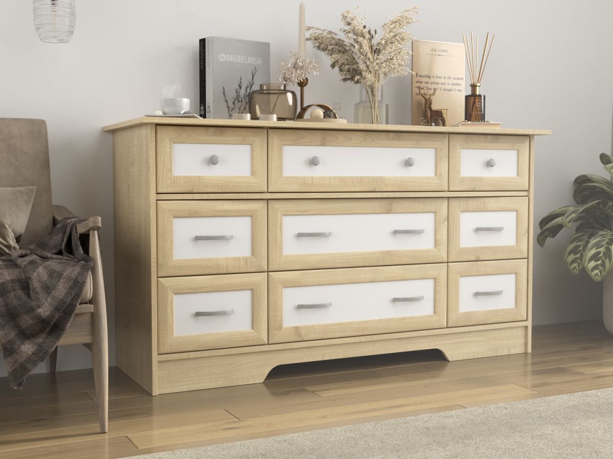 Комод Стенворд 15 - модель, которая изготовлена в лаконичном и простом дизайне. Будет гармонично смотреться с абсолютно любым стилем интерьера. Поставить это изделие можно в любом уголке жилья. Большое количество выдвижных ящиков различного размера отлично справятся с вопросом хранения личных вещей. В них можно разместить абсолютно всё.