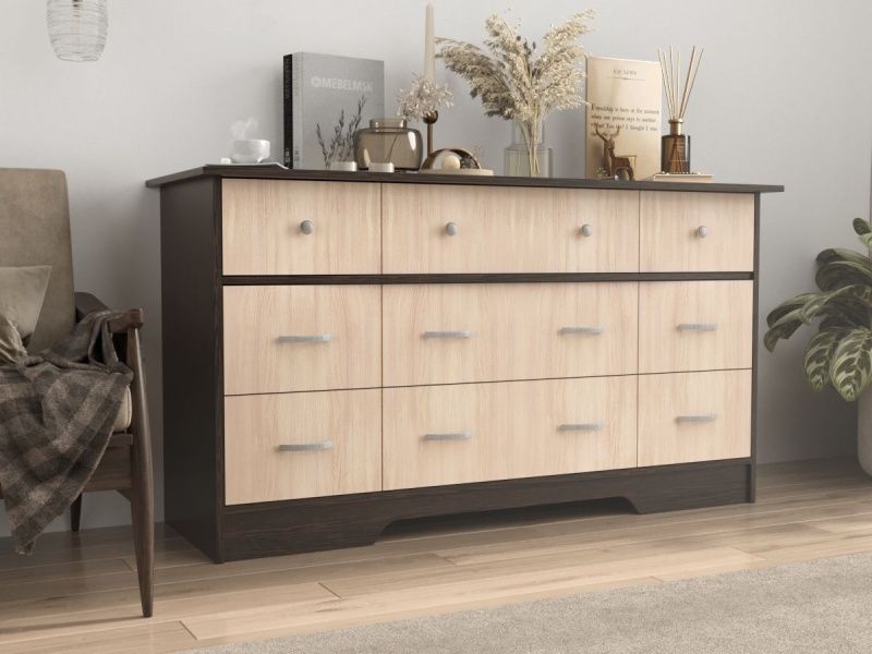 Комод Стенворд 16 - простое и функциональное изделие. Имеет девять удобных выдвижных ящиков, в которые поместятся вещи, книги и многое другое. Комод станет неотъемлемой частью вашего жилья, не займет много места и будет радовать хозяина.