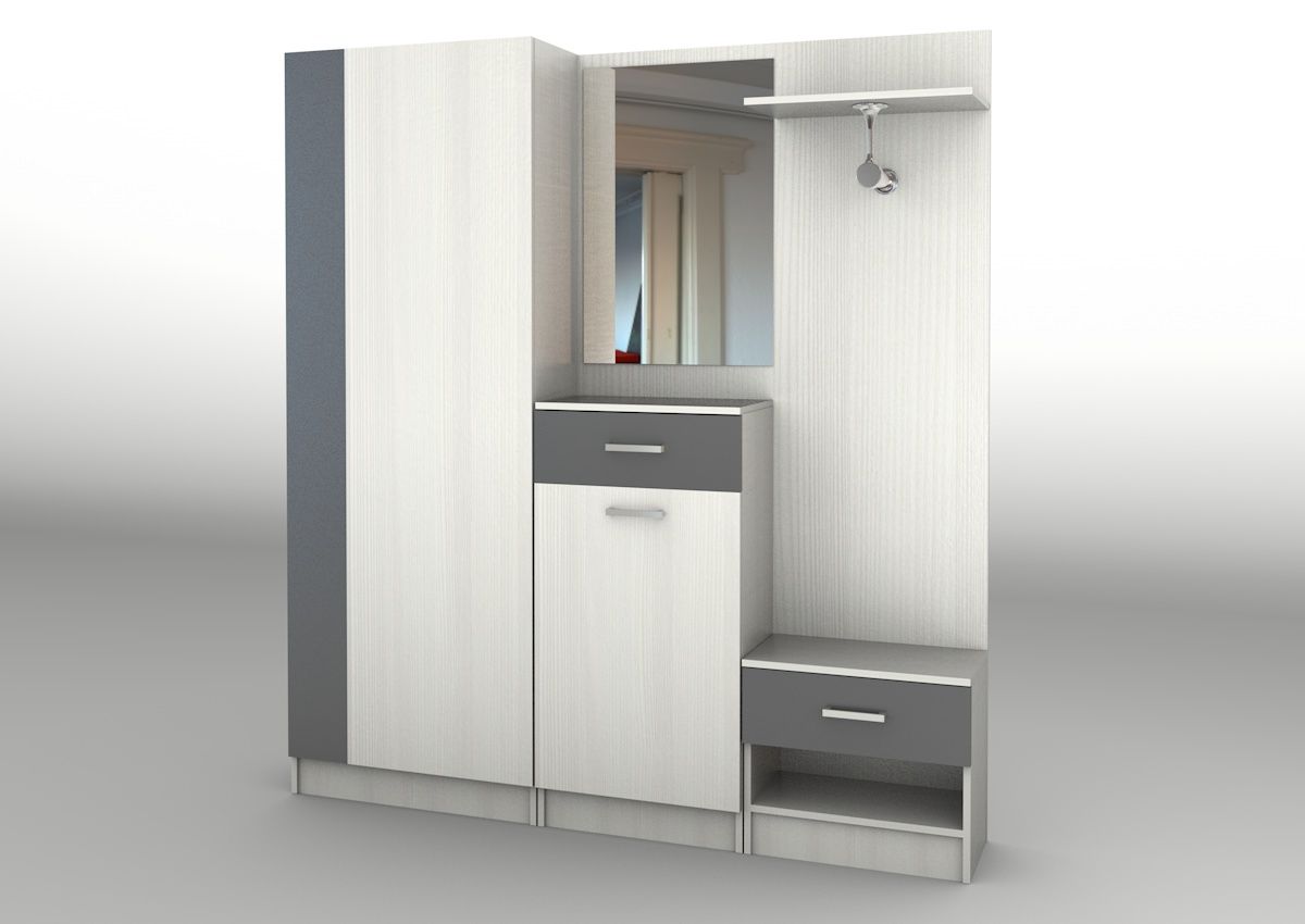 Прихожая Юнона - современный комплект мебели для прихожей. Включает в себя пенал, и модуль с обувницей, тумбой и вешалкой с полками и крючками для хранения одежды. Стильный и функциональный вариант для организации входной зоны. Зеркало входит в стоимость.
