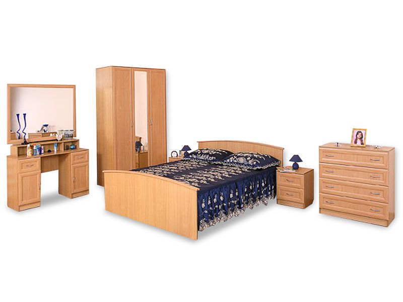Комплектация: Шкаф 2х-дверный: 800х2100х500 Тумбочка (2 шт.): 400х450х450 Комод: 800х900х400 Туалетный стол: 900х900х450 Панно: 500х800х20 Кровать 1600х2000 Цена комплекта по фото без стоимости матраса. Дополнительно: Матрас 13600 руб. |