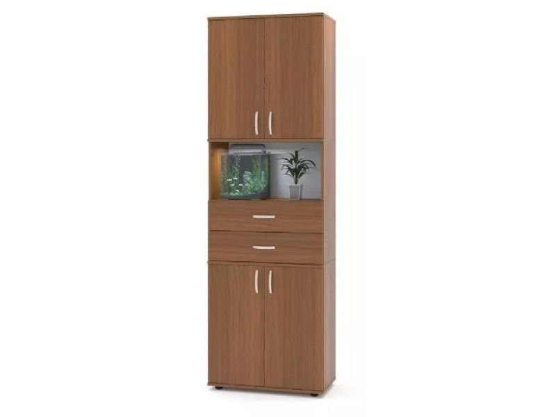 Стеллаж имеет два отделения с полками, скрытыми сплошными дверцами. В дополнение к ним